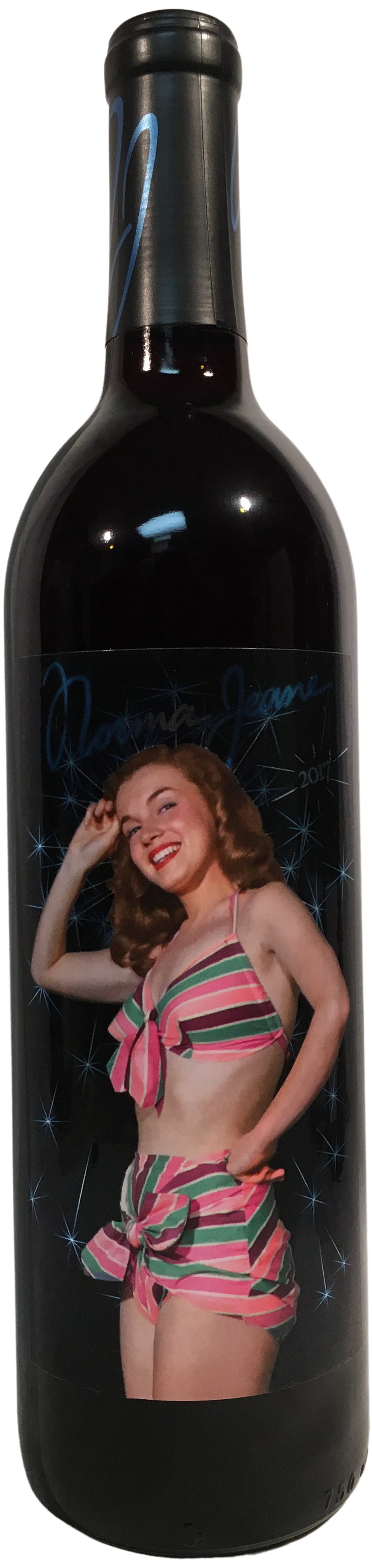 Photograph: In early, rarely seen glamour photographs by Bruno Bernard, known as Bernard of this Hollywood, you see a 20-year-old Norma Jeane with an eager smile and wide eyes, doing a pinup pose with a very un-pinup expression. Winemakers Notes:The color immediately impresses with rich dark purple hues. There is a wonderful complexity of aromas with raspberries and red cherries and added hints of dark chocolate, nutmeg and earthy herbal characters. The flavors mimic the aromas with added hints of vanilla and well integrated toasted oak. There is good structure, medium plus body, and is very nicely balanced as it glides over the palate with a pleasing, clean finish. The Vineyards: The grapes were harvested from the Estrella Triangle in the heart of the Paso Robles appellation. The vineyard is sustainable farmed and is 18 years old. For added complexity and depth, this year we blended in a little Petite Sirah and Cabernet Sauvignon, using grapes came from vineyards in close proximity and similar farming practices as the Merlot.