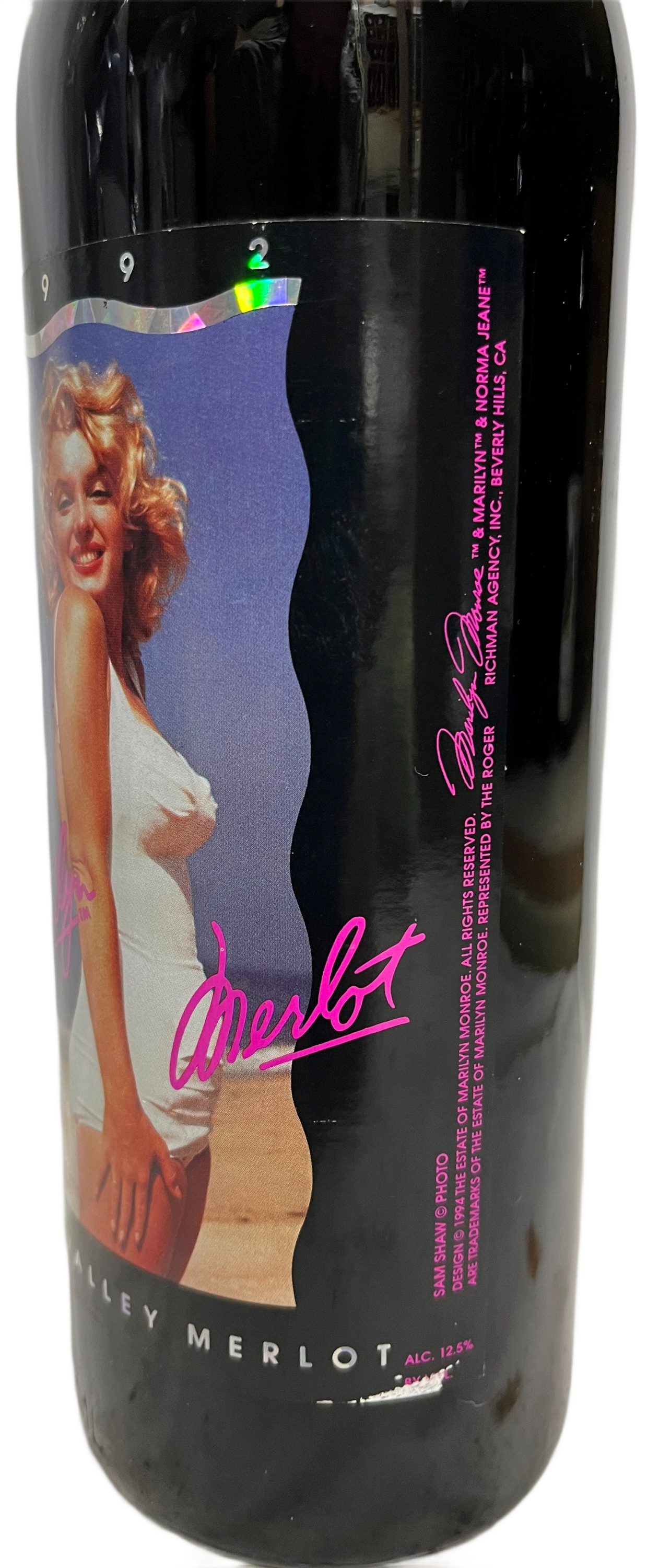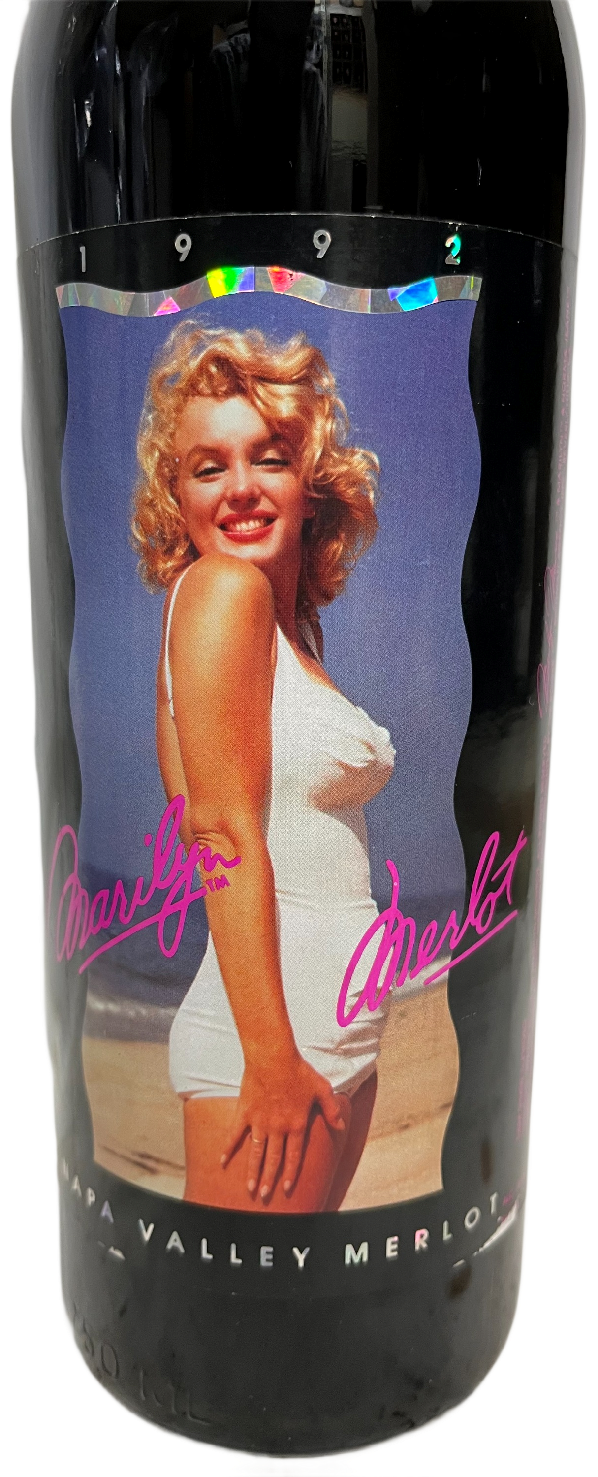 The 1992 Marilyn Merlot Napa Valley Merlot 750 ml is from the Napa Valley region of California. The 1992 Marilyn Merlot label is from a photograph session at Hampton Beach in 1958 done by Sam Shaw.