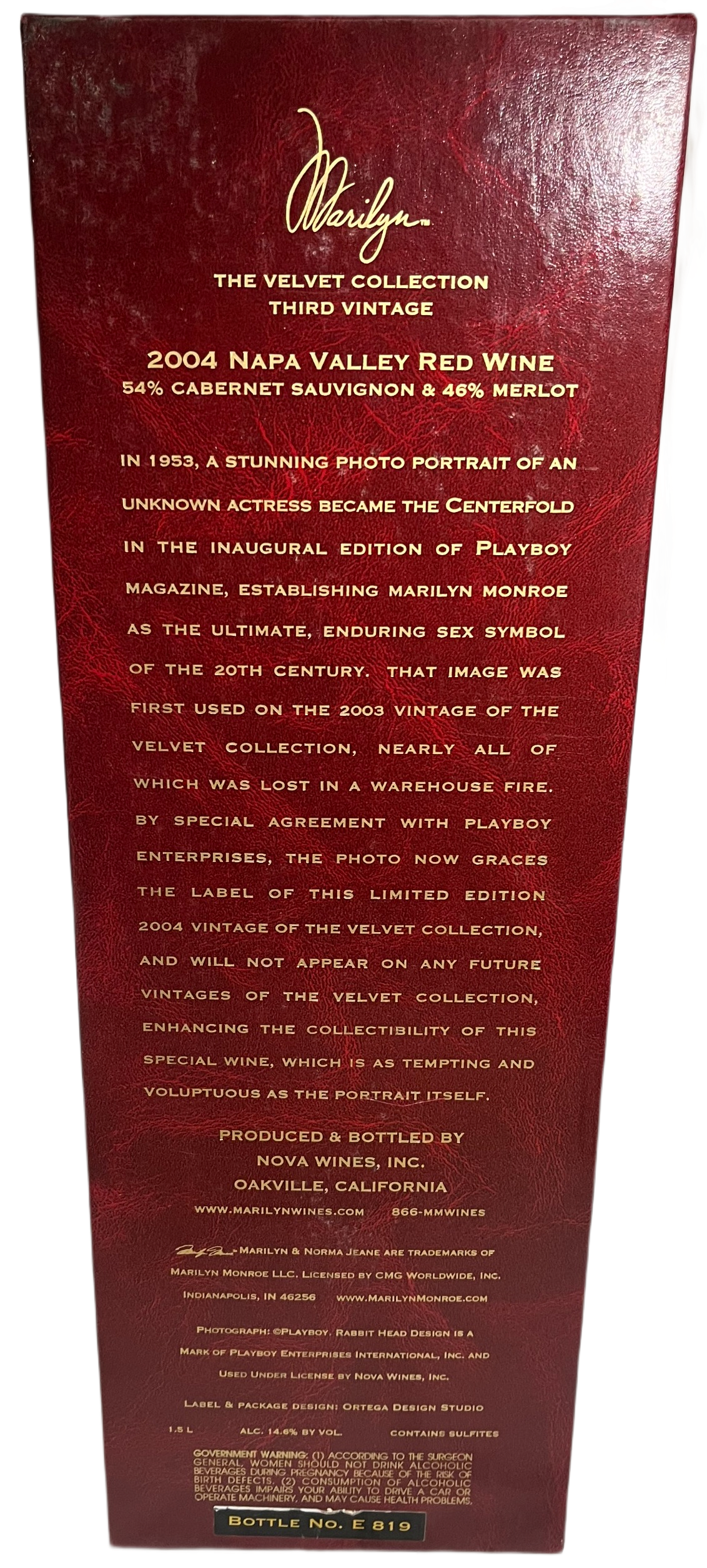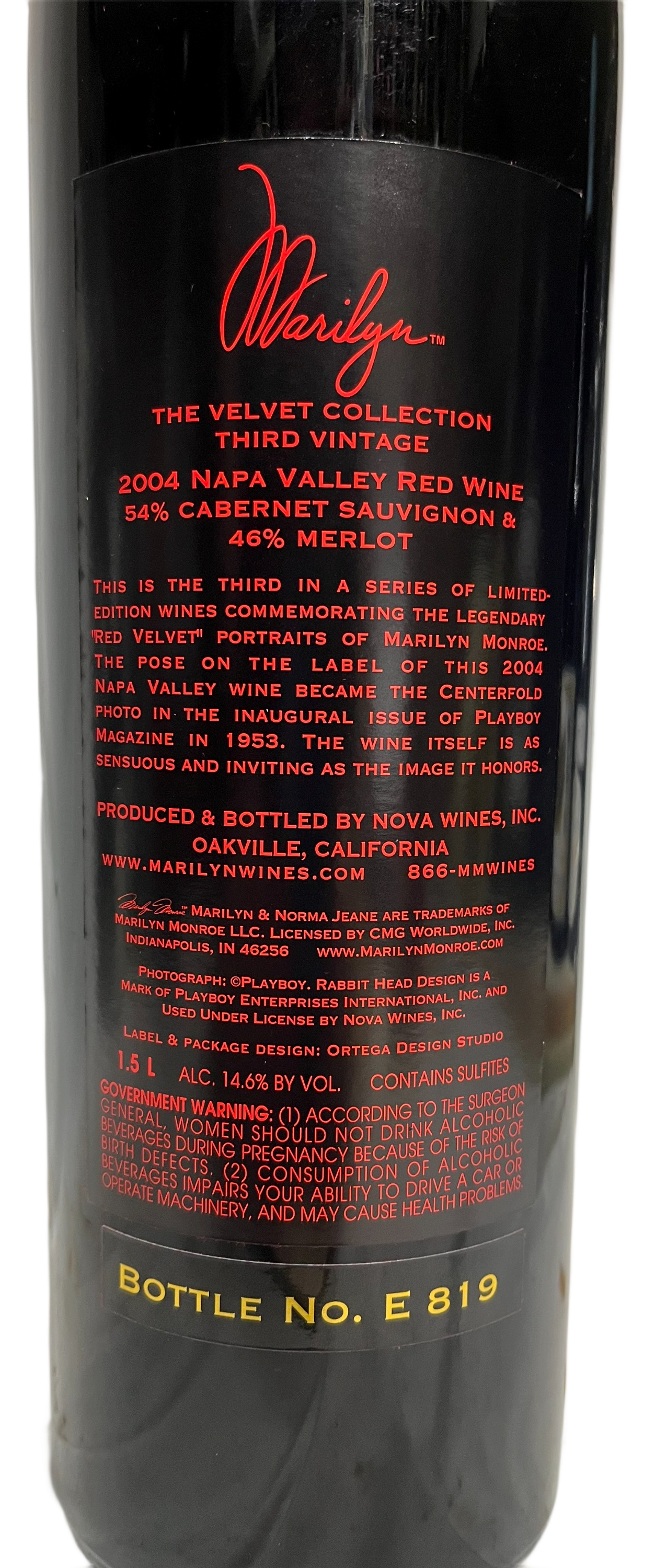 The 2004 Marilyn Merlot Velvet Collection Napa Valley Merlot 1.5L is from the Napa Valley region of California.